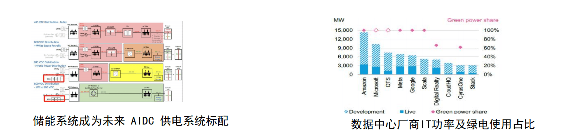国家多项将“能源数字化适配”纳入城市数字底座建设范畴,人工智能数据中心(AIDC)作为数字城市的算力核心,其高能耗、高稳定性需求与储能技术深度绑定,绿色转型为AIDC储能提供了战略定位。2025年以来,多部门政策形成“组合拳”。绿电消纳要求:《关于促进可再生能源绿色电力证书市场高质量发展的意见》明确,国家枢纽节点新建AIDC到2030年绿电消费比例不低于80%,鼓励通过储能提升可再生能源消纳能力。绿色数据中心标准:《2025年度国家绿色数据中心推荐工作通知》要求数据中心可再生能源利用率达标,并将储能、氢能技术纳入加分项。城市能源转型:《数字化绿色化协同转型工作要点》提出,推动AIDC等数字设施“零碳发展”,储能成为配套标配。