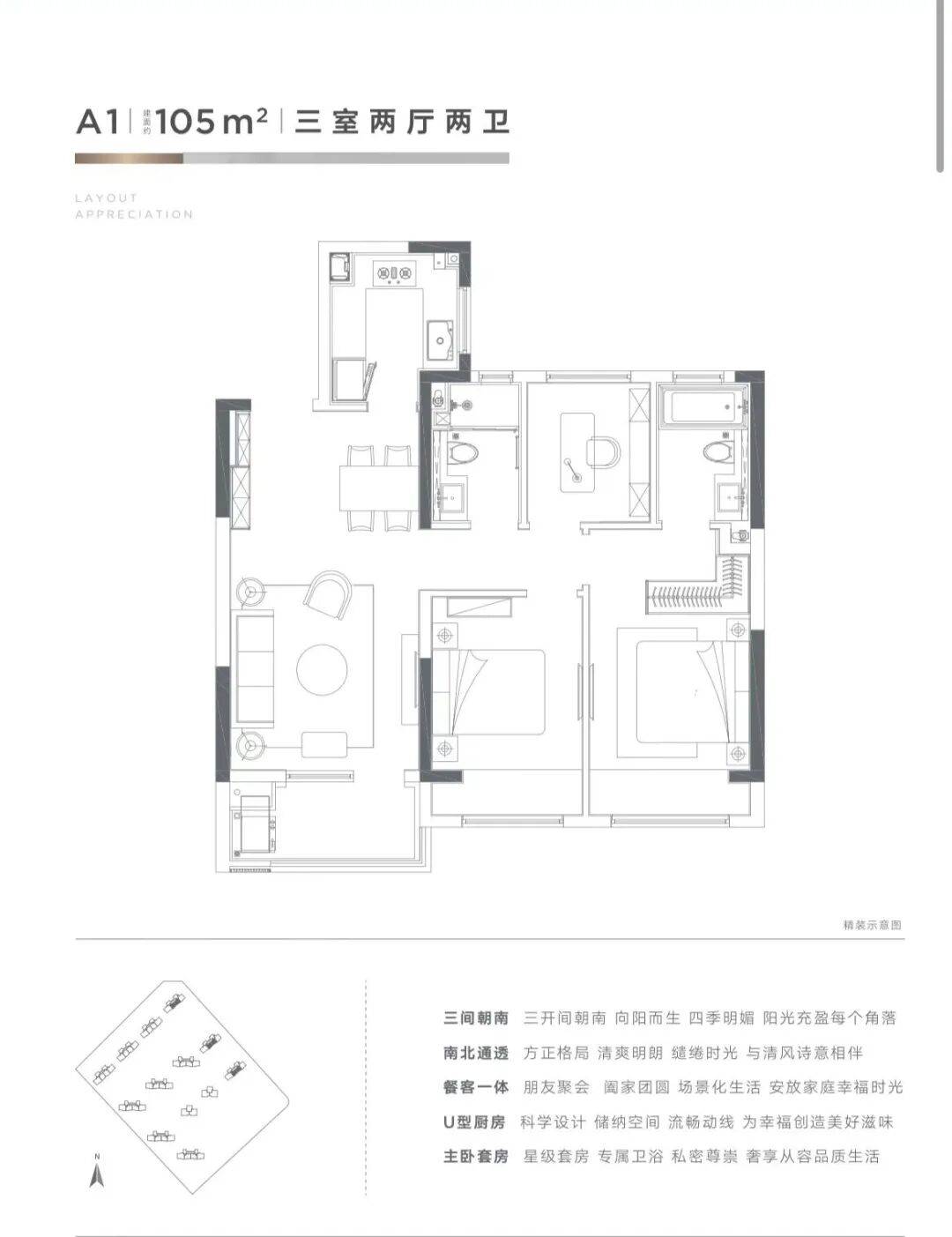 多种户型,满足全家想象项目提供了从约105㎡到220㎡的多种户型,无论是温馨三口之家,还是追求宽敞空间的改善家庭,都能找到心仪之选。户型设计注重采光、通风和空间利用率,旨在为每个家庭打造舒适、健康的居住环境。从刚需户型到大平层,雅乐云庭的户型选择非常丰富。